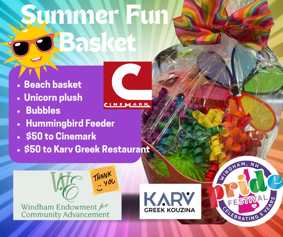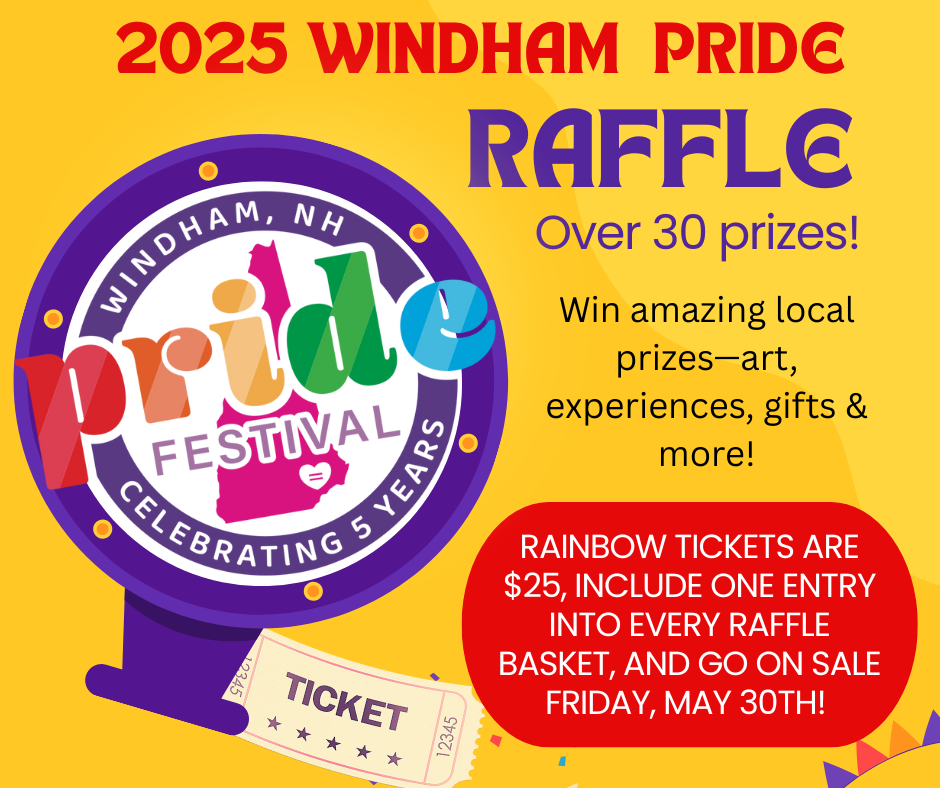 One of the highlights of the Windham Pride Festival is our fantastic raffle! It’s a true showcase of the incredible community support we receive. Local businesses and generous individuals have donated amazing baskets, and this year we have over thirty fabulous prizes to choose from!
